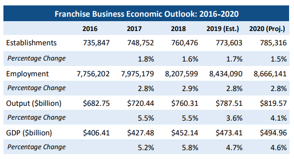 En EE.UU, la franquicia representa más del 4,6% de su GDP (PIB), es decir, 494.960 millones de $. Y cuenta con 785.316 establecimientos.